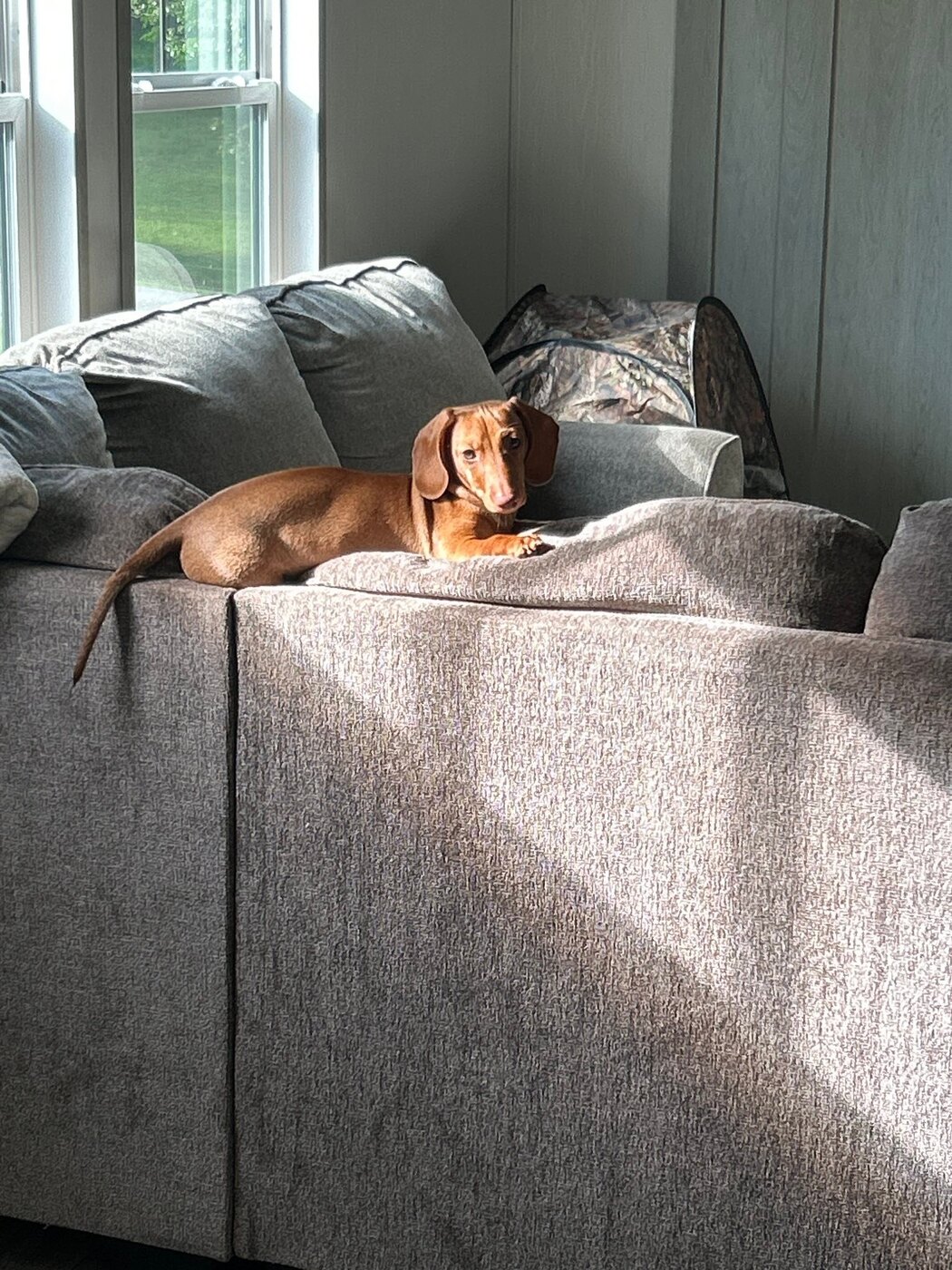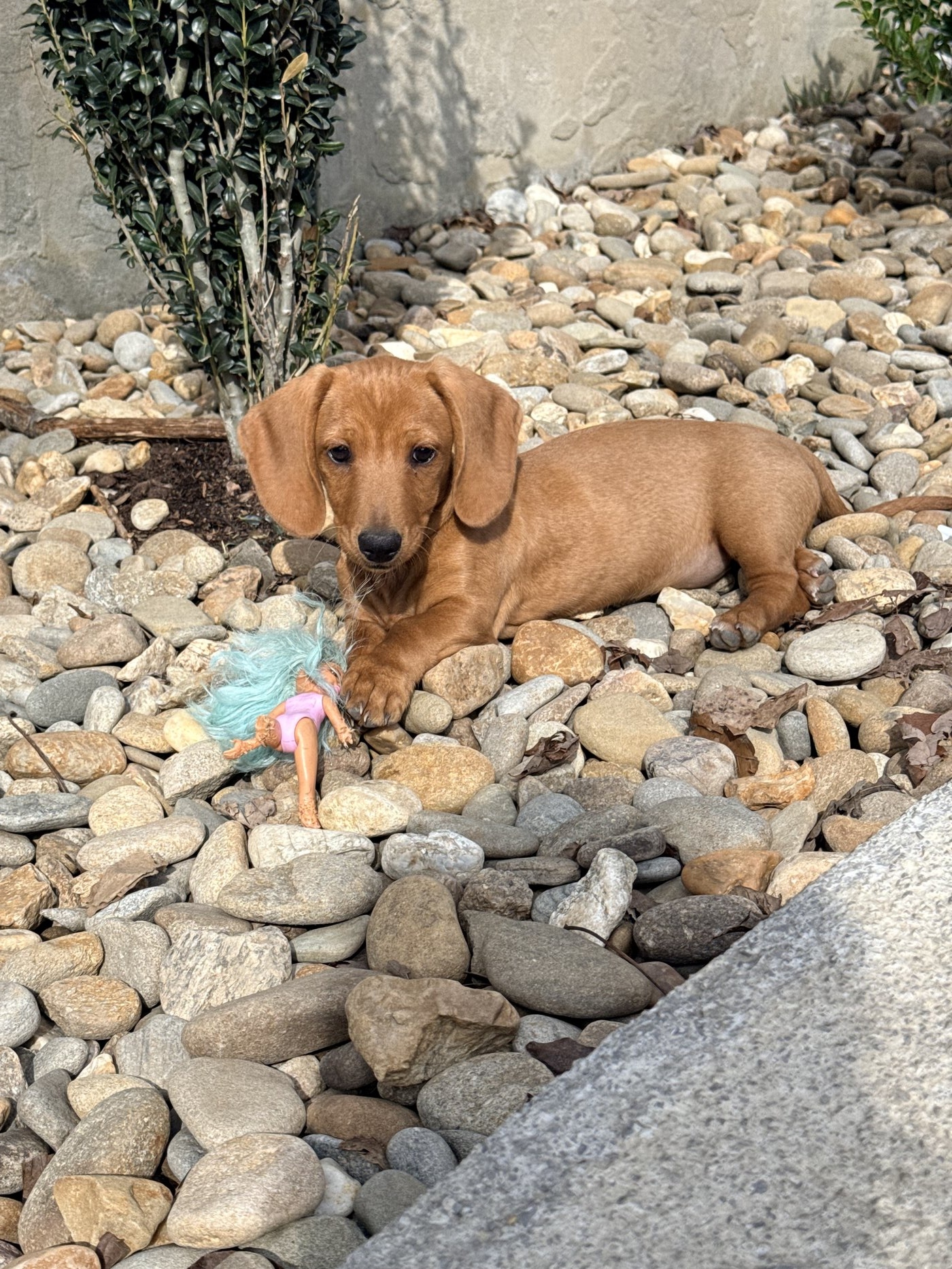 Opal is sooo sweet and loving. She is super playful and energetic. Great for a adventurous family!! She loves our kids and pigs as well. She does great with all the animals and loves attention!